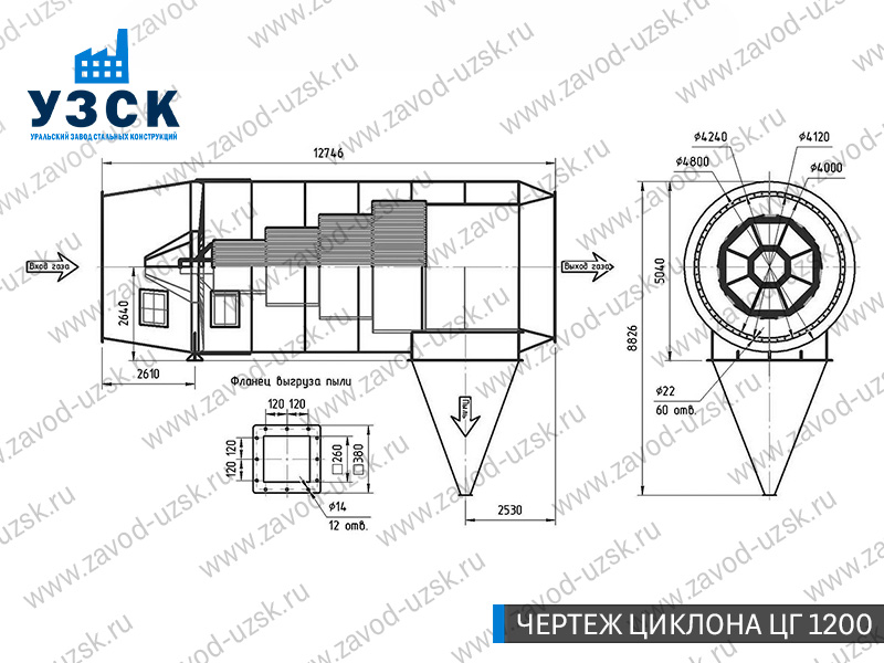 Горизонтальные циклоны-искрогасители ЦГ поставляются в Нижнем Новгороде в сборке или же транспортными единицами для последующей сборки, если предназначены для работы с большими объемами.